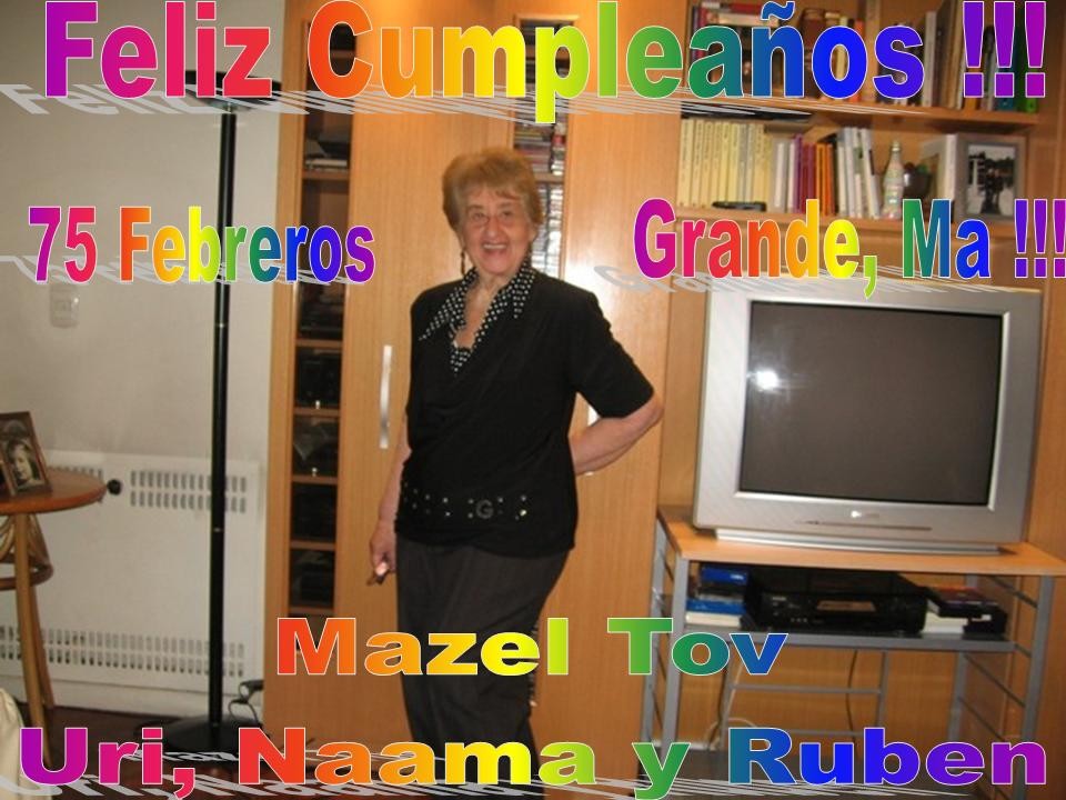 SHALOM Dorita e IsaacPD de RUBEN: El que piense que esta foto a la izquierda esta distorsionada, esta equivocado, no de casualidad que Dorita esta posando como una super model ! Esta reflaca, rebien y le deseamos seguir asi por muchisimas decadas mas !!! Mazal Tov mama y por los proximos 75 como los primeros !!!